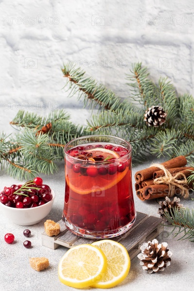 Клюквенный сок с лимоном и тростниковым сахаром. Зимний горячий напиток