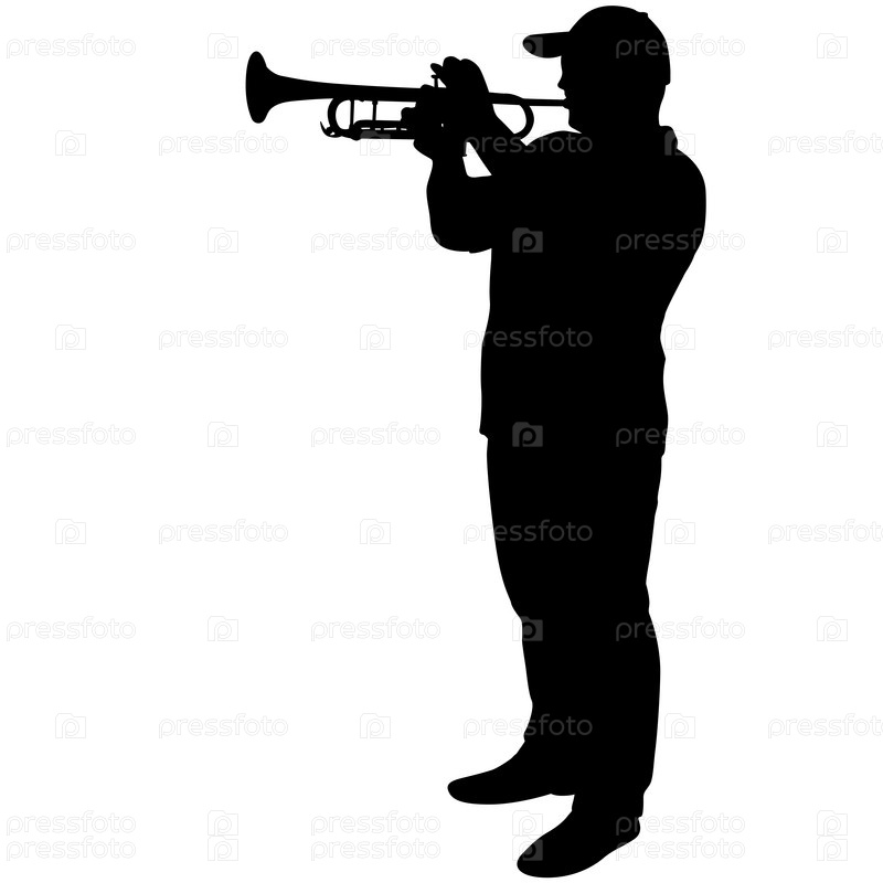 Силуэт музыканта, играющего на трубе на белом фоне