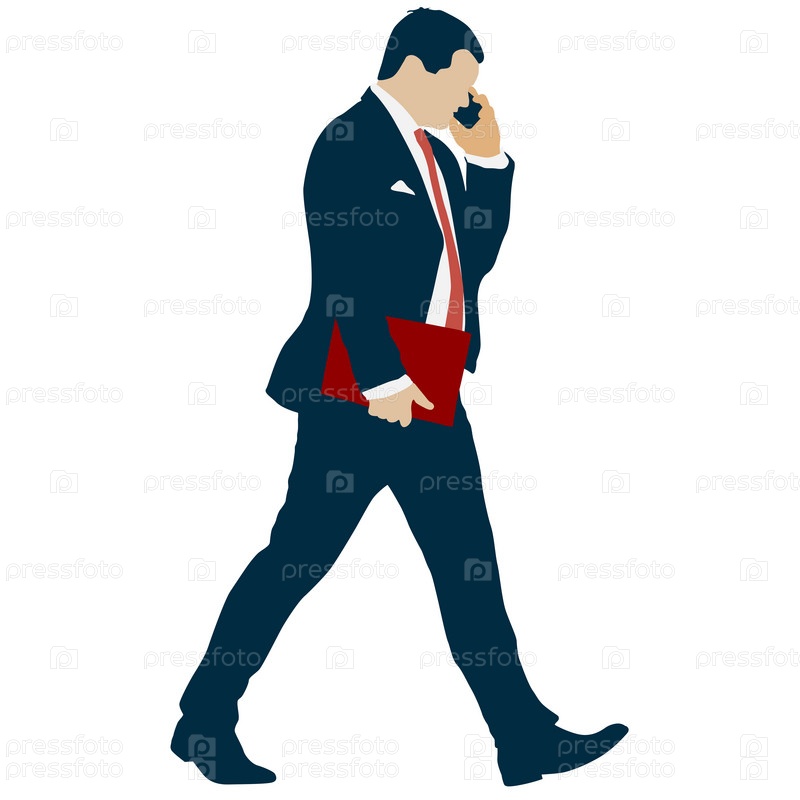 Силуэт бизнесмена разговаривает по телефону, на белом фоне