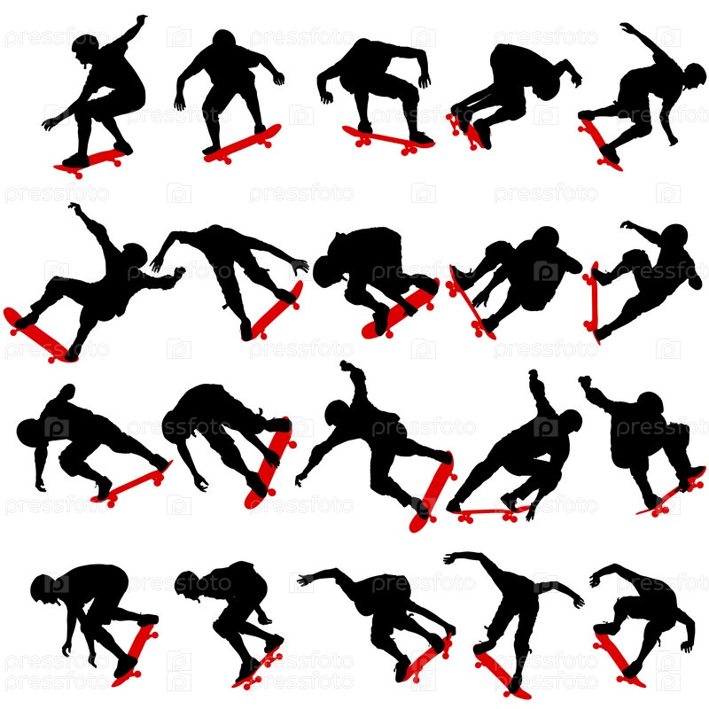 Установите силуэты скейтбордиста, выполняющего прыжки