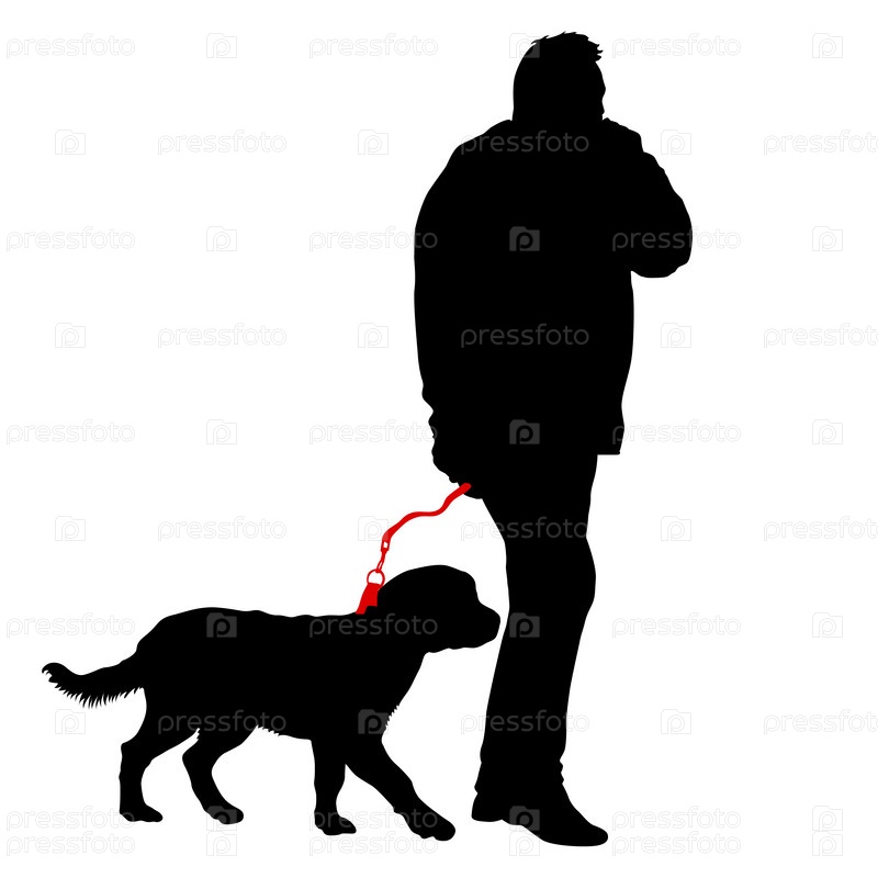 Силуэт человека и собаки на белом фоне