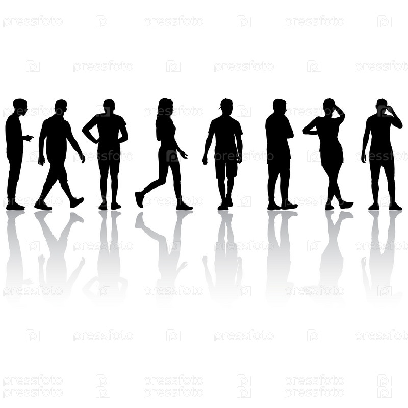 Силуэт группы людей, стоящих на белом фоне