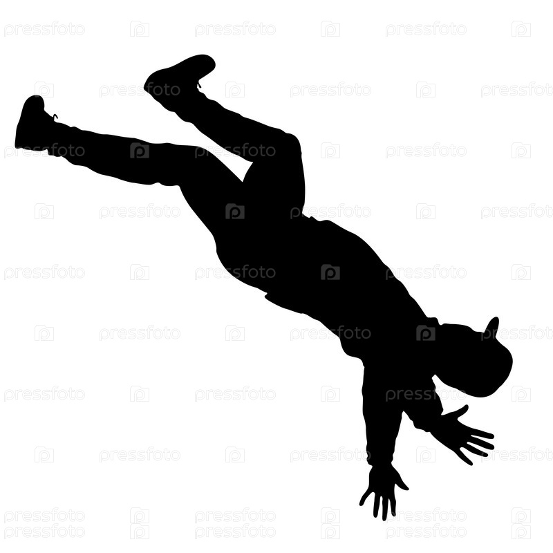 Брейкдансер черных силуэтов на белом фоне