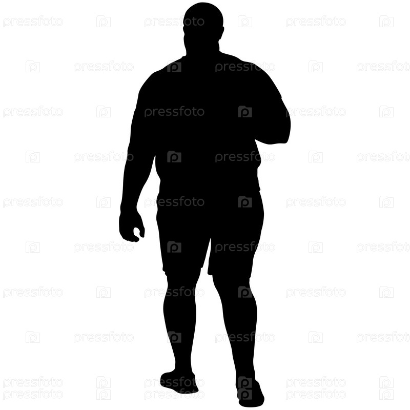 Черные силуэты крупного мужчины на белом фоне