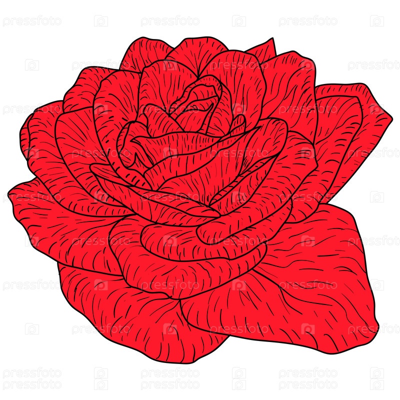 Красивый цветной эскиз, цветок розы на белом фоне