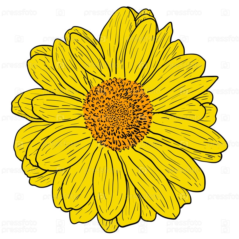 Красивый цветной эскиз, цветок георгина на белом фоне