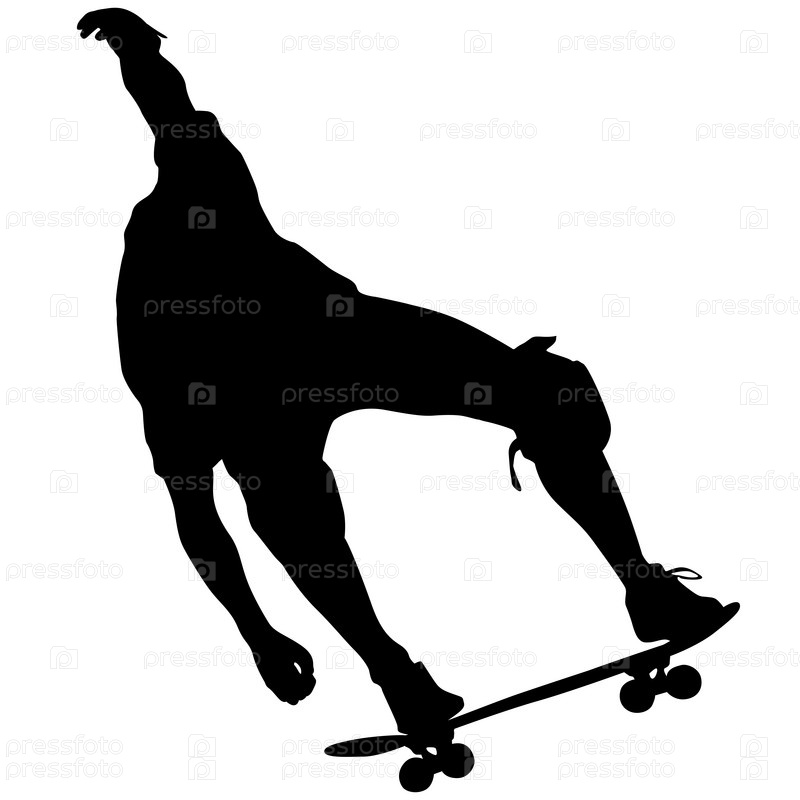 Черный силуэт спортсмена-скейтбордиста в прыжке