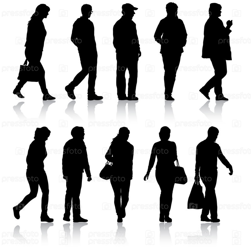 Силуэт группы людей, стоящих на белом фоне