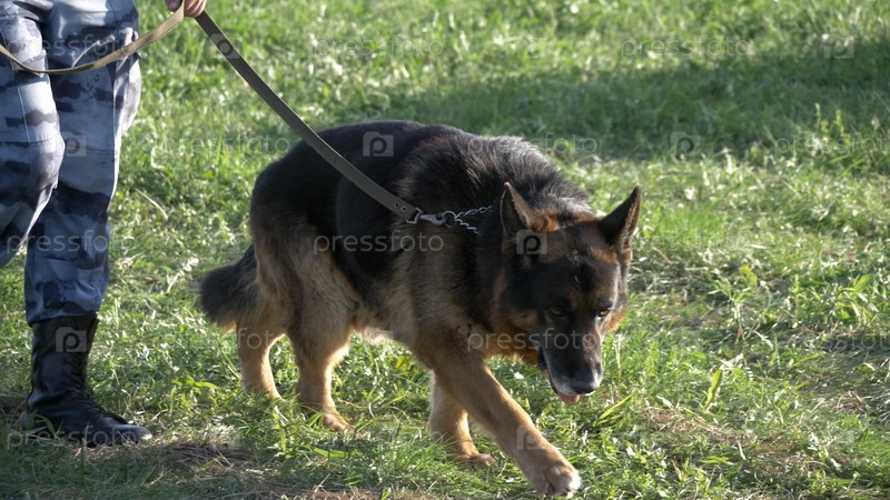 Мужчины со служебной собакой на траве