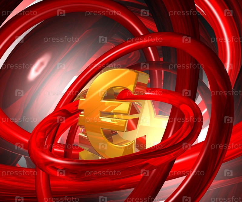 Золотой символ евро в абстрактном пространстве - 3d иллюстрация