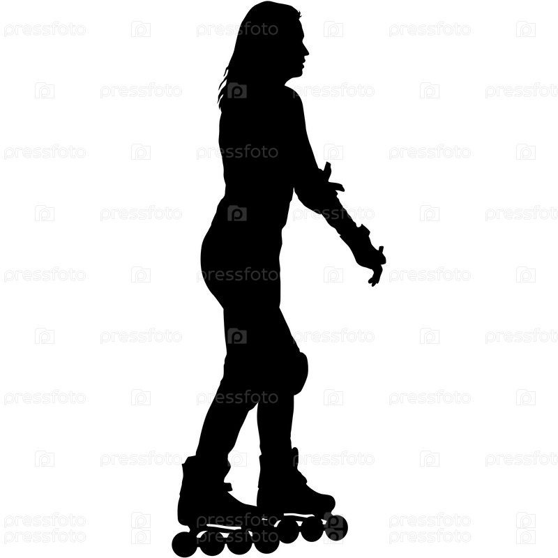 Черный силуэт спортсмена на роликовых коньках на белом фоне