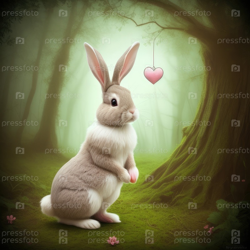 Милый кролик на фоне блестящего сказочного леса