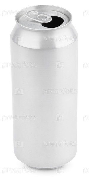 Открытая алюминиевая пивная банка пива на белом фоне