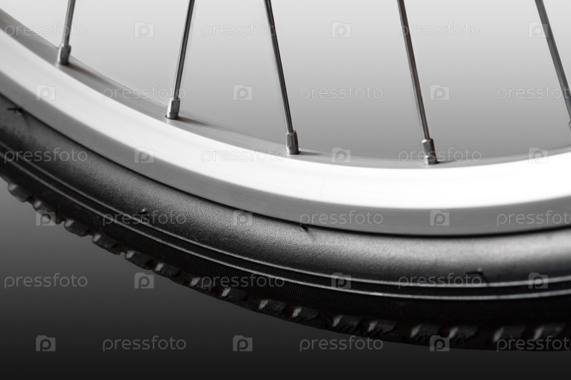 Переднее велосипедное колесо. Крупный план. Изолированные на белом фоне