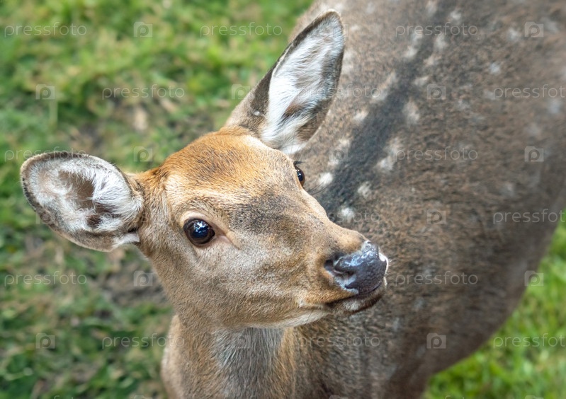 Дикое животное самка пятнистого оленя крупным планом