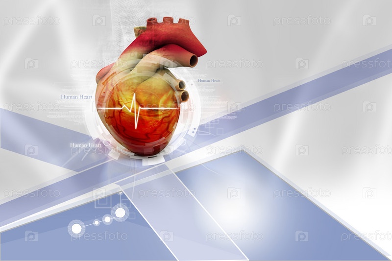 Цифровая иллюстрация человеческого сердца на абстрактном фоне