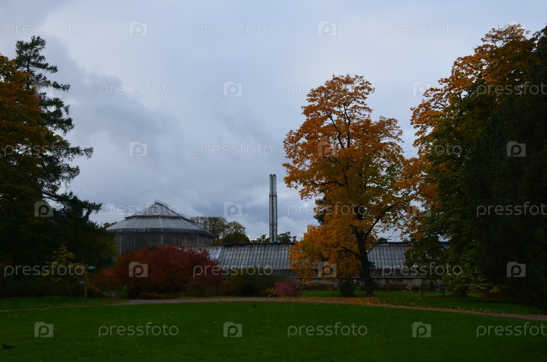Яркие осенние листья деревьев в Ботаническом саду Петра Великого Санкт-Петербурга