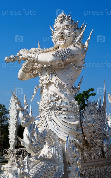 Скульптура воина, охраняющего вход в Белый храм в Чианг Май
