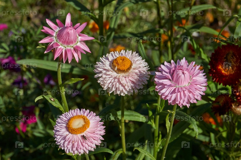 В саду цветет бессмертник (лат. Helichrysum) крупный род семейства Астровые (Asteraceae)
