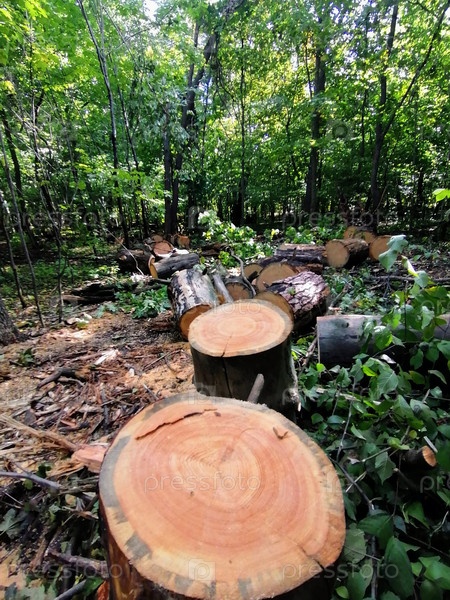 Срубы деревьев в лесу летом