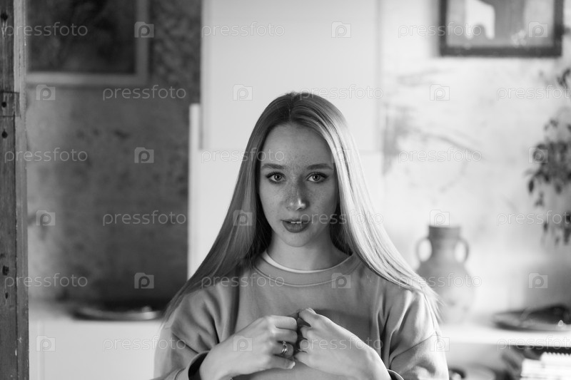 Портрет молодой красивой женщины с рыжими волосами в студии