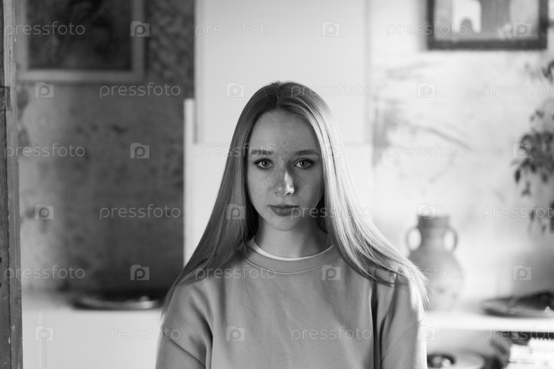 Портрет молодой красивой женщины с рыжими волосами в студии