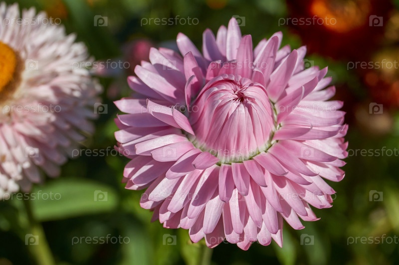 В саду цветет бессмертник (лат. Helichrysum) крупный род семейства Астровые (Asteraceae)