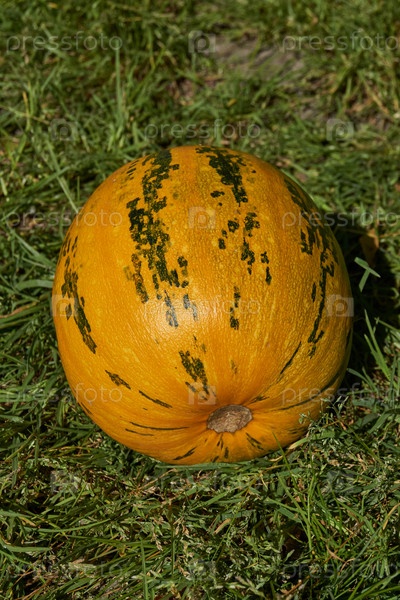 Тыква созрела в саду. Огородник вырастил красивые и вкусные тыквы. Осень