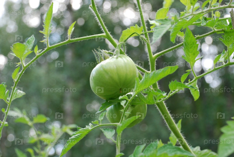 Большие зеленые помидоры на ветке