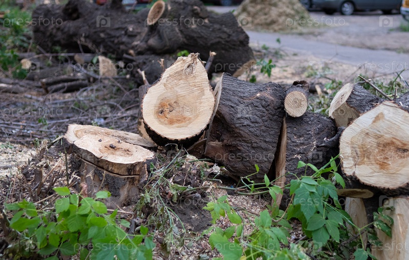 Вырубка леса. Деградация лесов. Новое строительство деревянных домов. Пни в лесу. Эко-концепция