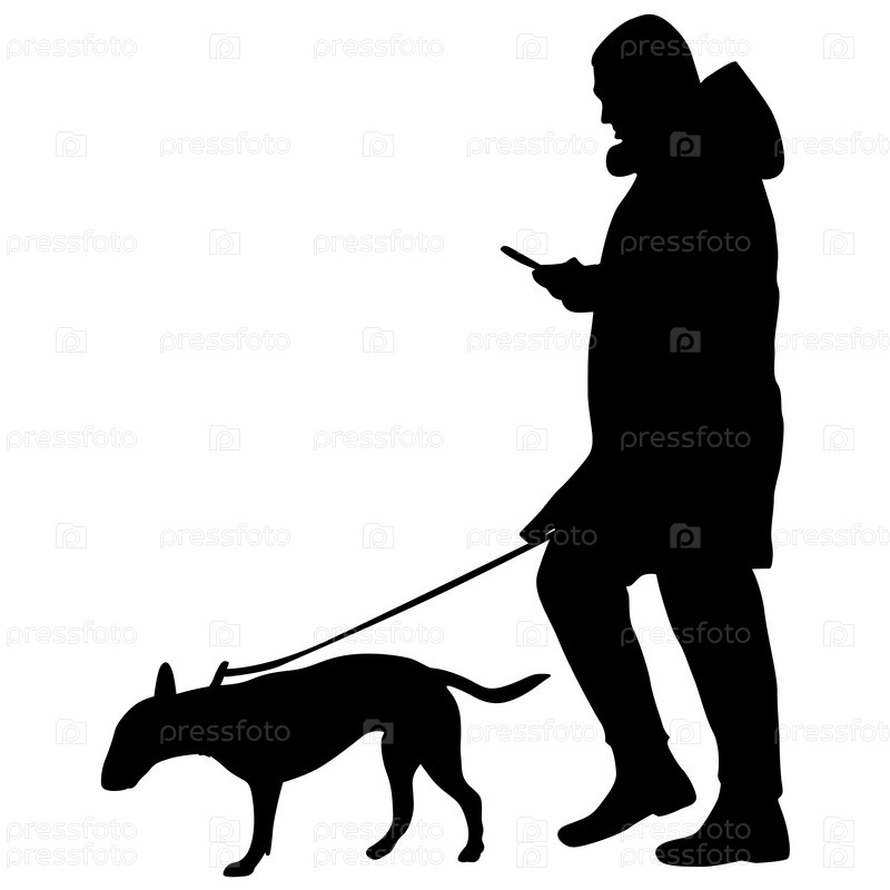Силуэт женщины и собаки на белом фоне