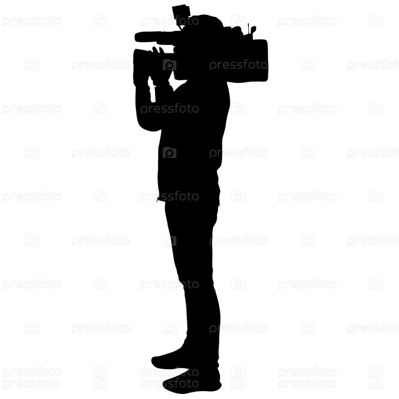 Оператор с видеокамерой. Силуэты на белом фоне