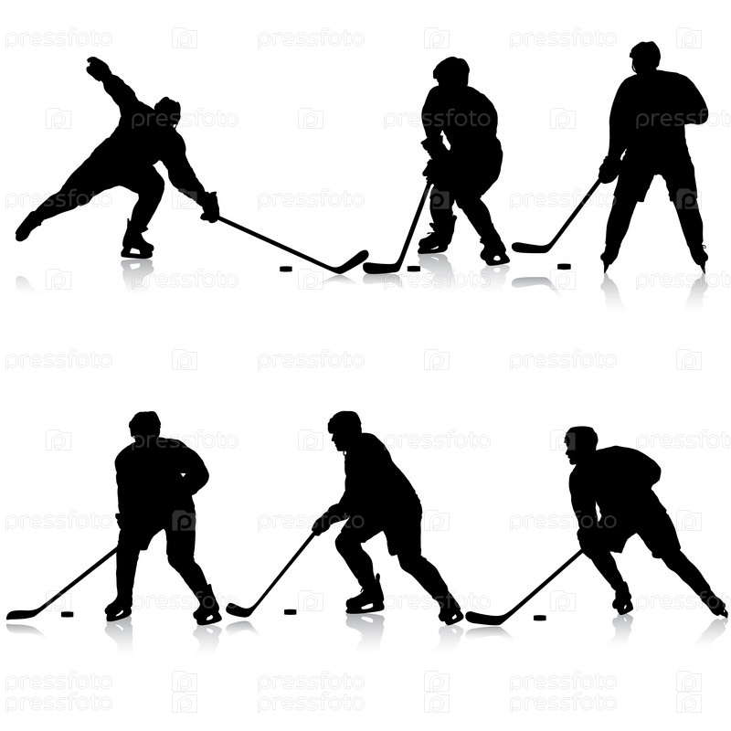 Набор силуэтов хоккеиста. Изолированные на белом