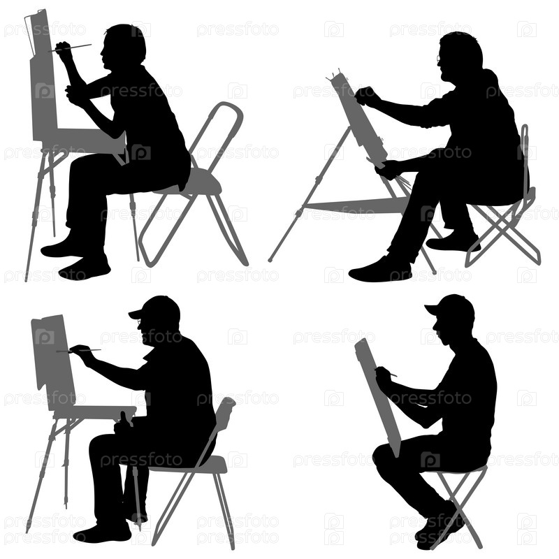 Установите силуэт, художник за работой на белом фоне