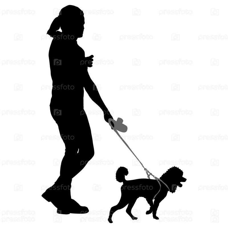 Силуэт женщины и собаки на белом фоне