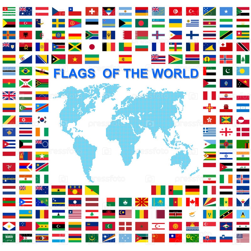 Набор флагов суверенных государств мира, подписанных названиями стран