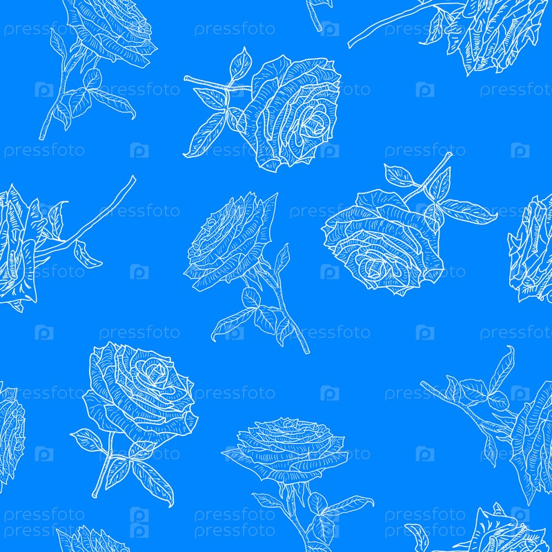 Красивые бесшовные разноцветные розы и листья
