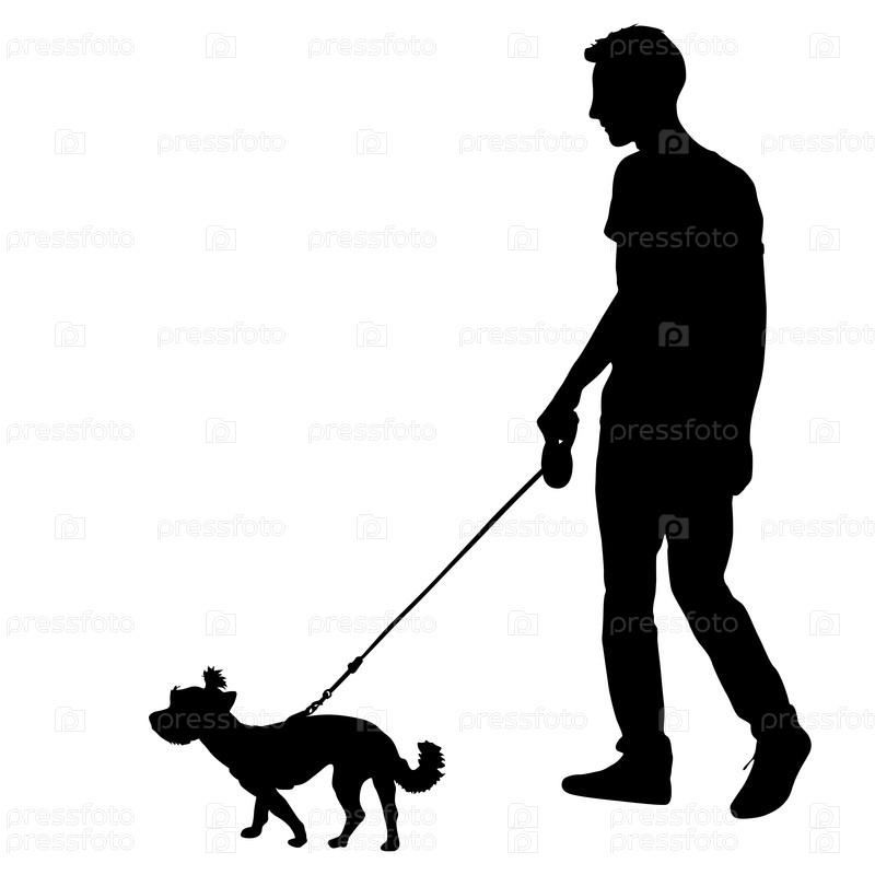 Силуэт человека и собаки на белом фоне