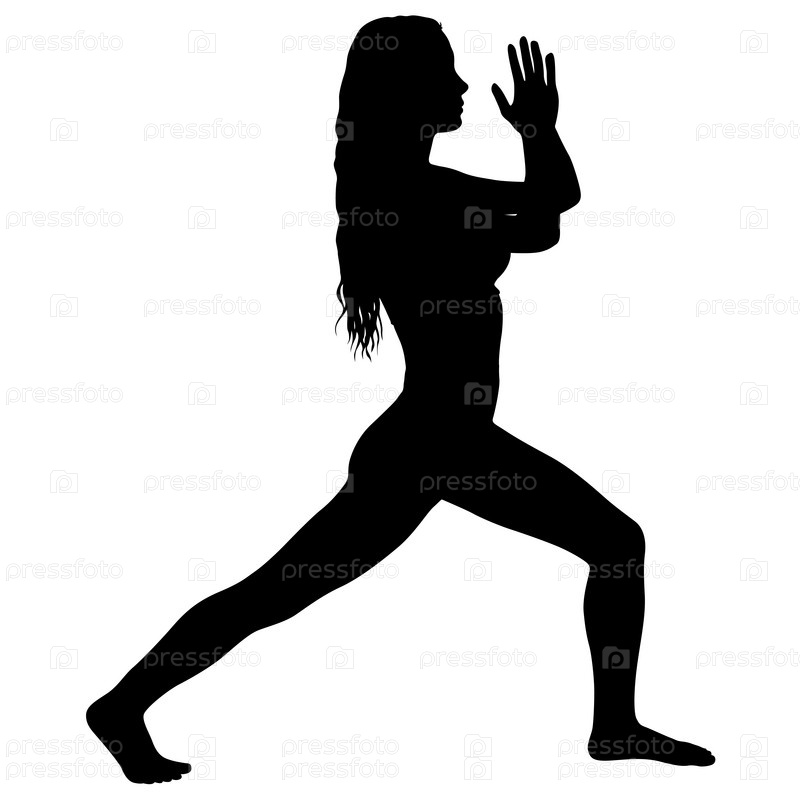 Силуэт девушки на занятиях йогой в позе на белом фоне