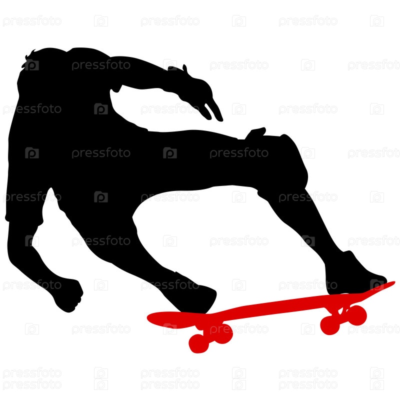 Черный силуэт спортсмена-скейтбордиста в прыжке