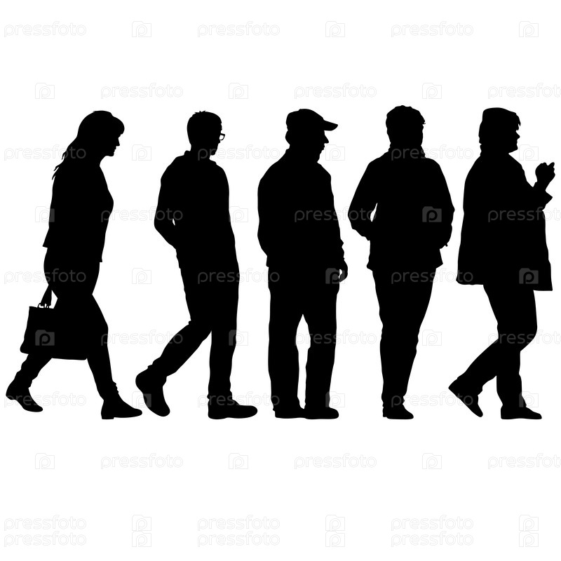 Силуэт группы людей, стоящих на белом фоне