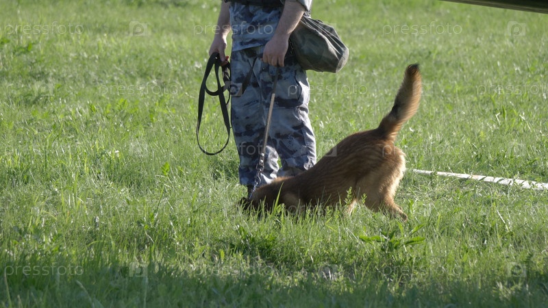 Мужчины со служебной собакой на траве