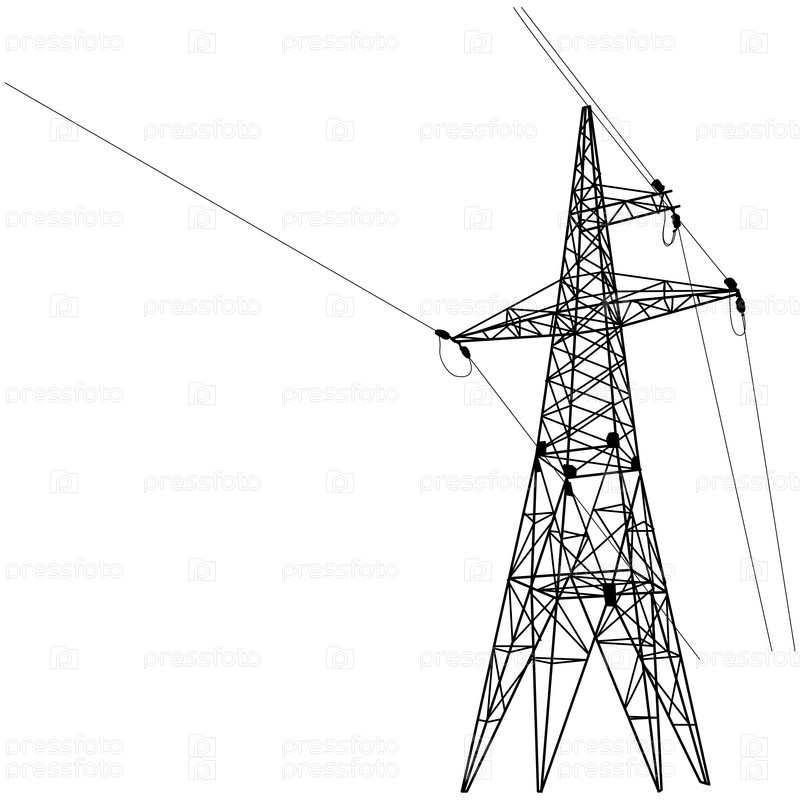 Силуэт линий электропередачи высокого напряжения на белом фоне