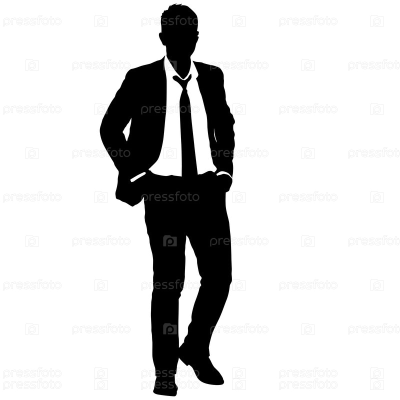 Силуэт бизнесмена в костюме с галстуком на белом фоне