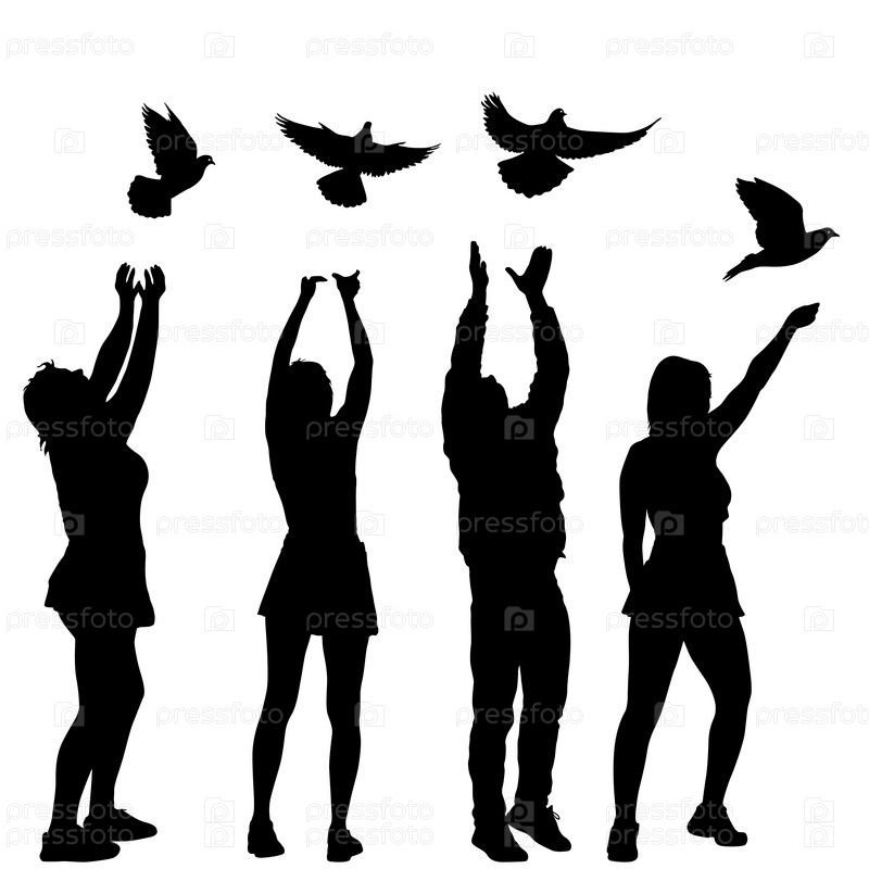 Силуэт парня и девушки, отпускающих голубя в небо