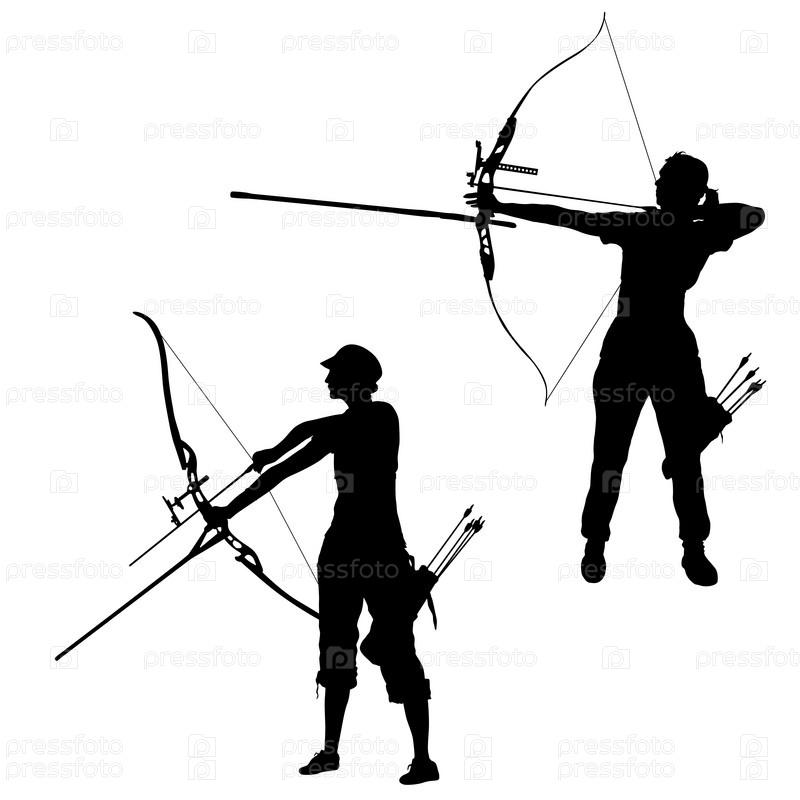 Установите силуэт привлекательной женщины-лучника, сгибающей лук и целящейся в цель
