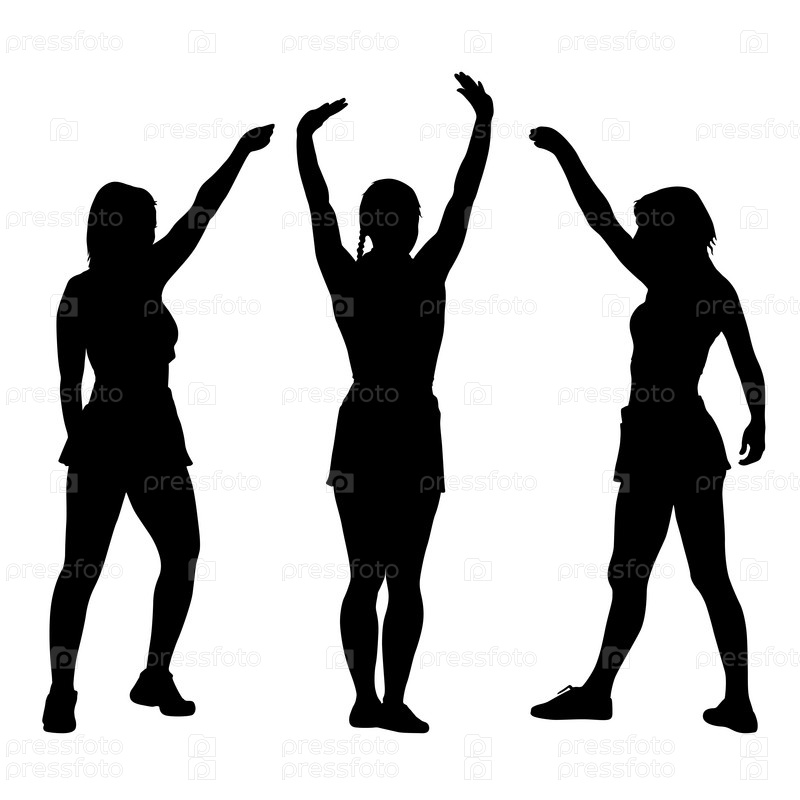 Черные силуэты женщин с поднятой рукой на белом фоне