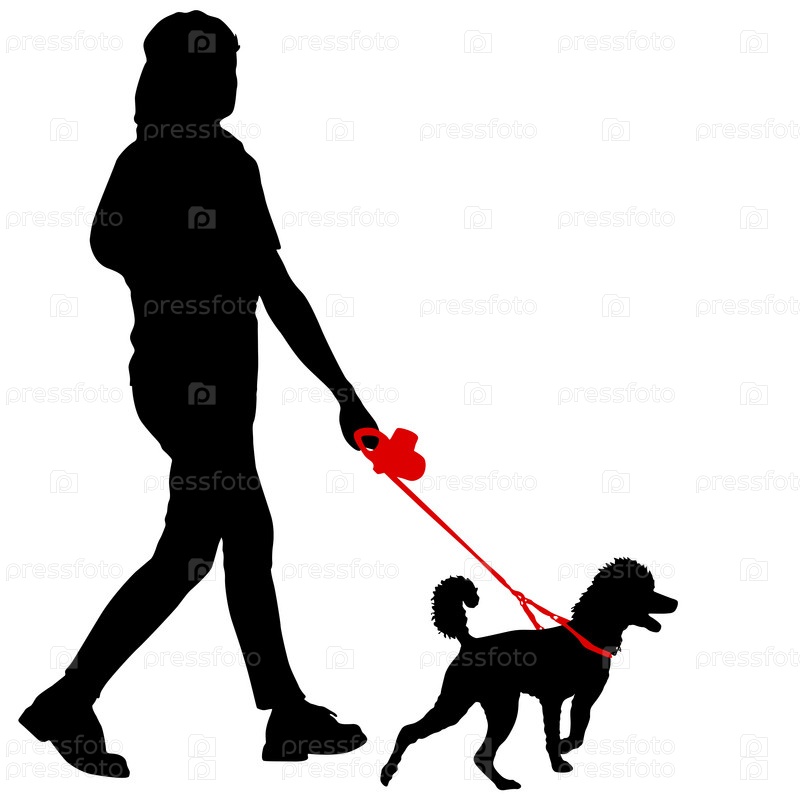 Силуэт женщины и собаки на белом фоне