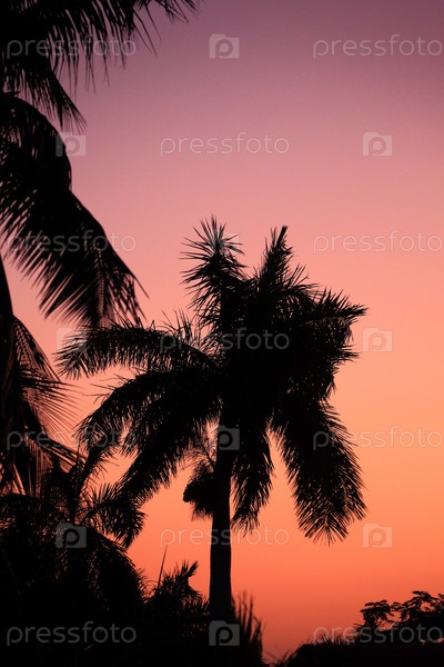 Крона королевской пальмы на фоне заката. Варадеро, Куба