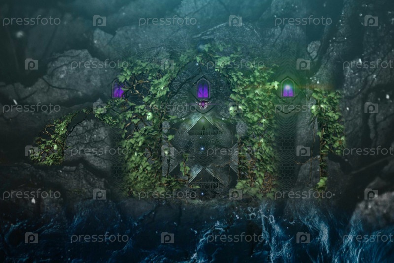 Футуристический фон "замок в скале"